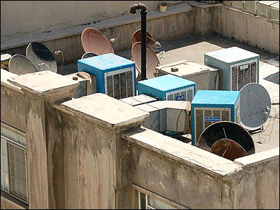 زمانی نه چندان دور، تنها کولرهای آبی رنگ، آنتها های تلويزيون و اين طرف و آنطرف لوله های بخاری بر پشت بام های تهران ديده می شد. الان چند سالی است که به اين تصوير بشقاب های زنگ زده ای هم اضافه شده که به آسمان خيره شده اند و گهگاه باد آنها را از جای می کند.