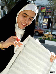 دختر ايرانی در حال بررسی نتايج کنکور دانشگاه آزاد. اسامی پذیرفته شدگان کنکور پزشکی، غیر پزشکی و پاره وقت دانشگاه آزاد اسلامی امروز منتشر شد.