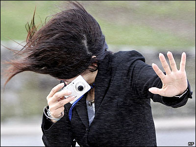 جهانگردی در ساحل تفريحی بوندی در استراليا سعی دارد در هوای طوفانی عکس بگيرد. طوفان و بارش شديد باران، حمل و نقل را در شهر سيدنی مختل کرده و باعث مرگ يک نفر شده است.