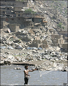 ماهيگير افغان در حال صيد ماهی در درياچه پيچ در استان کنر، افغانستان. اين در حاليست که خشونتها در جنوب اين کشور همچنان ادامه دارد و فرمانده ارشد ناتو از کشورهای عضو اين سازمان خواسته است تا نيروی بيشتری به افغانستان اعزام کنند.