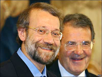 علی لاريجانی، دبير شورای عالی امنيت ملی و سرپرست مذاکرات هسته ای جمهوری اسلامی، امروز در رم پايتخت ايتاليا، با رومانو پرودی نخست وزير اين کشور ديدار کرد.
