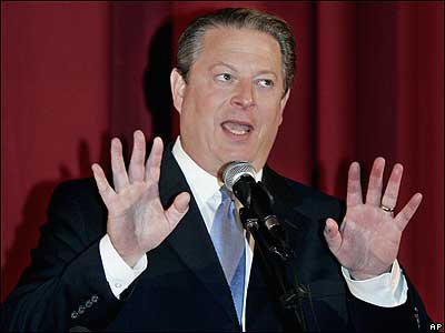 ال گور معاون پيشين رياست جمهوری آمريکا، در مراسم نخستين نمايش فيلم مستند او در مورد گرم شدن کره زمين، برای بينندگان سخنرانی می کند. |