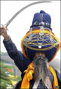 يک عضو ارتش سنتی سيک ها در هند، که عمامه ای به طول 425 متر بر سر دارد، در مراسم رژه ای در آميستار هند شرکت کرده است.