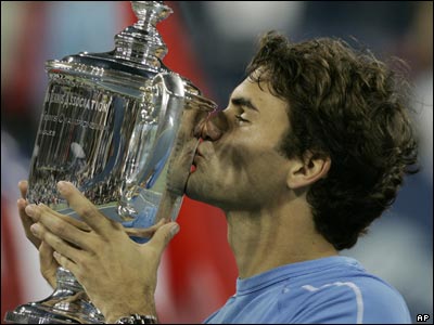 بوسه بر جام پيروزی: راجر فدرر از سوئيس در مسابقات قهرمانی تنيس مردان اندی روديک از آمريکا را شکست داد. مسابقات تنيس آزاد در نيويورک انجام می شود.