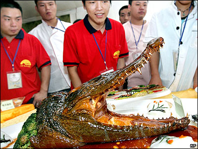 غذايی تهيه شده از سر يک تمساح در مسابقه آشپزی در چين
