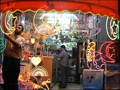 چراغانی مغازه ای در مدينه به مناسبت ماه رمضان