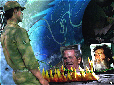 يک سرباز سپاه پاسداران ايران در نمايشگاهی به مناسبت بيست و ششمين سالگرد جنگ ايران و عراق در تهران