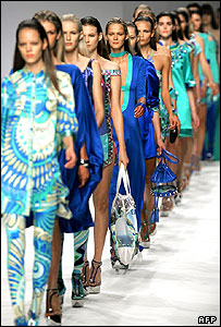 مانکن های ايتاليایی در حال اجرای نمايش لباس مجموعه بهار و تابستان در شهر ميلان. |