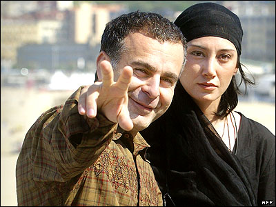 بهمن قبادی، کارگردان کرد ايرانی، و هديه تهرانی، بازيگر سينما، در جشنواره فيلم سن سباستين. فيلم "نيومانگ" يا ماه نيمه اين کارگردان در اين فستيوال به نمايش گذاشته شد.