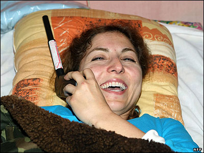 انوشه انصاری در حال تماس با تلفن ماهواره ای