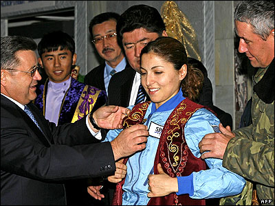 انوشه انصاری با لباس های سنتی قزاقستان