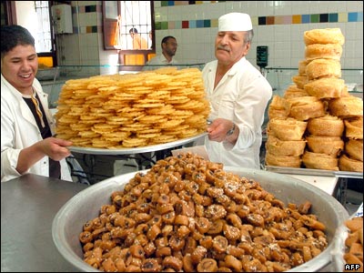 شيرينی فروشی در تونس. در ماه رمضان فروش شيرينی به اندازه قابل ملاحظه ای افزايش می يابد