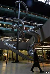 یک سرسره بزرگ درگالری تیت (Tate) لندن. این اثر هنری که توسط کارتسن هولر آلمانی طراحی شده، طبقه فوقانی را به طبقه همکف گالری وصل کرده است