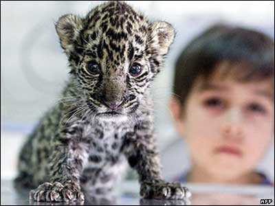 کودکی در حال تماشای یک بچه پلنگ خالدار در گواتمالا. دولت آمریکا اعلام کرد که 24 میلیون دلار از بدهی های دولت گواتمالا را در قبال تلاش این کشور برای حفاظت از جنگلهايش می بخشد.