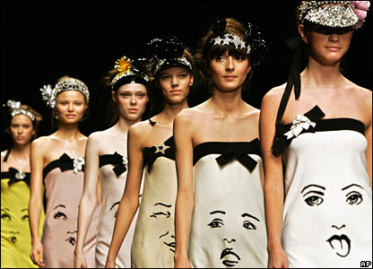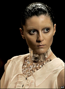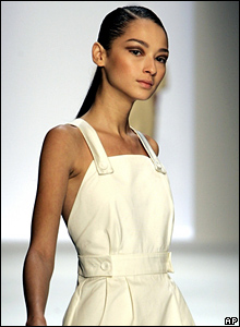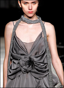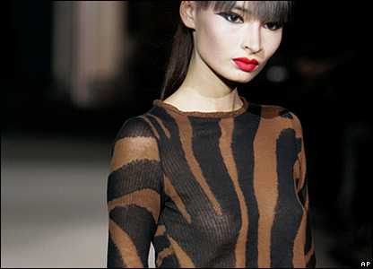 کاری از فرانکی شی طراح چينی. اين نخستين بار است که يک طراح چينی کارهای خود را در هفته مد پاريس به نمايش می گذارد.