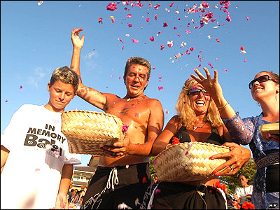 اعضای انجمن فعالان صلح استراليا در مراسم يادبود قربانيان بمبگذاری های سال 2002 در جزيره بالی اندونزی گرده هم آمدند.