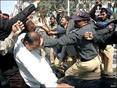 درگيری پليس پاکستان با تظاهرکنندگانی که خواستار استعفای پرويز مشرف رئيس جمهور اين کشور بودند.