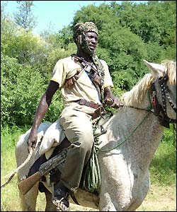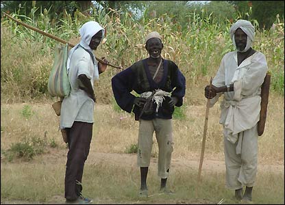 بعضی روستائيان سلاح با خود حمل می کنند اما ادعا می کنند که سلاحها متعلق به جنجويدهايی است که کشته يا زخمی می شوند. بسياری مانند اين مرد اشيائی از گردن يا کمر خود آويزان می کنند که معتقدند شر را از آنها دور می کند.