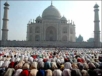 نماز مسلمانان هندی در مقابل مسجد تاج محل در اين کشور.