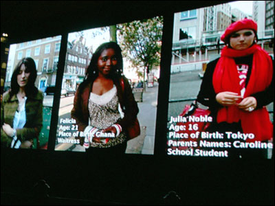 لندنی ها: بخشی از فيلم نمونه ای از ساکنان شهر لندن را نشان می داد که نام، سن، محل تولد و شغلشان نيز نوشته می شد و يکی از هر سه شخصيت ترانه يا موسيقی ای از سرزمين مادری اش را زمزمه می کرد