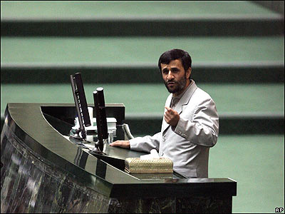 محمود احمدی نژاد رييس جمهور ايران، درحال سخنرانی در مجلس شورای اسلامی. در جلسه روز 29 اکتبر مجلس عبدالرضا مصری وزیر پیشنهادی وزارت رفاه و تامين اجتماعی از مجلس رای اعتماد گرفت.