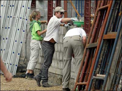 برد پیت بازیگر مشهور هالیوود در حال کمک به ساخت خانه ای در دهکده ای در نزدیکی بمبئی، هند. این خانه سازی جزوی از پروژه خیری جیمی کارتر رییس جمهور سابق آمریکا که قرار است طی آن صد منزل مسکونی در مناطق محروم هند در عرض یک هفته ساخته شود.