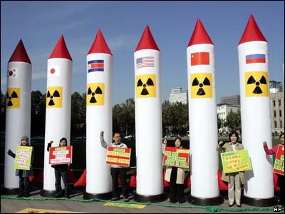 مخالفان آزمایشهای اتمی کره شمالی در تظاهراتی در سئول ، کره جنوبی
