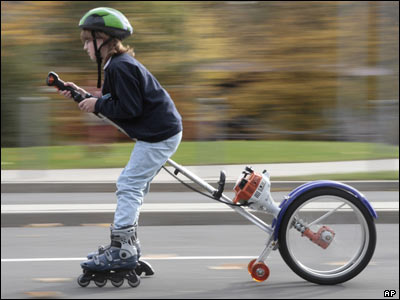 پسری سوار بر یک جاروی متحرک به مناسبت جشن "هالووین" در نمایشگاهی در آلمان.