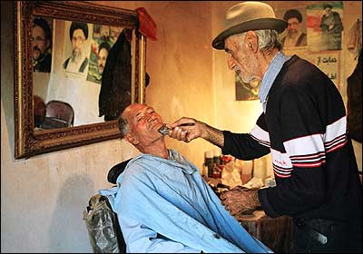 سلمانی مردانه در روستايی در نزديکی درياچه.