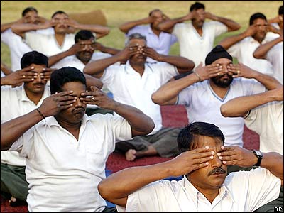 سربازان ارتش هند در حال انجام تمرينات يوگا.