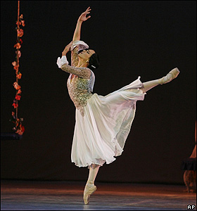 يکی از رقصندگان باله ملی کوبا در حال اجرای نمايش در بيستمين جشنواره بين المللی باله در اين کشور. |