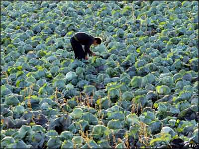 يک آلبانيايی الاصل در شمال کوزوو در حال کار در يک مرزعه کلم