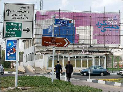تابلوهای تبليغاتی اجناس خارجی در نقاط مختلف شهر تهران به چشم می خورند.