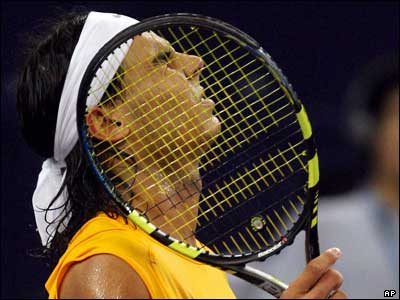 واکنش رافائل نادال تنیس باز مشهور اسپانیایی در هنگام از دست دادن امتیازی در مقابل نیکولای داویدنکو تنیس باز روس در طی مسابقه ای در شانگهای چین.