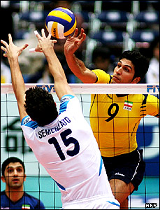 امروز تيم های ملی وليبال ايران و ايتاليا در چارچوب مسابقات قهرمانی جهان که در ناگانوی ژاپن در جريان است ديدار کردند. اين بازی با نتيجه ۳-۱به نفع تيم ايتاليا به پايان رسيد. در عکس فوق عليرضا نادی واليباليست ايرانی در حال ضربه زدن به توپ ديده می شود.