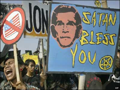 تجمع اعتراض آمیز دانشجویان اندوزیایی به دلیل حضور جورج بوش رئیس جمهور آمریکا در این کشور
