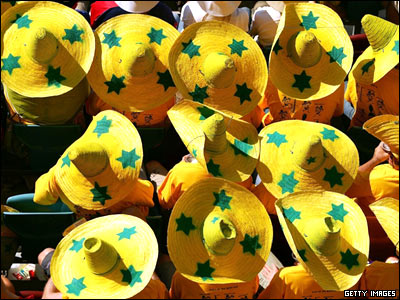نمایی از تماشاچیان استرالیایی مسابقه کریکت بین تیمهای استرالیا و انگلستان.