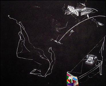 در تابلوهای قطع بزرگ تنهايی و خودباختگی و هويت گم کردگی انسان امروز در ايران خود را به چشم می کشاند.