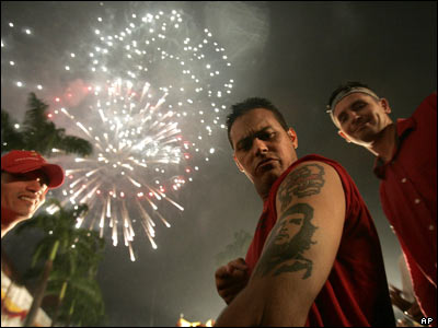 جشن طرفداران هوگو چاوز به مناسبت انتخاب مجدد او به رياست جمهوری ونزوئلا .