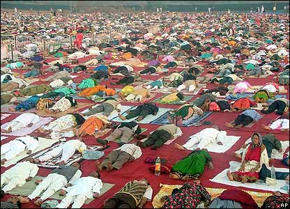 يک کلاس همگانی يوگا در هند برگزار شده است |
