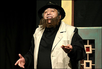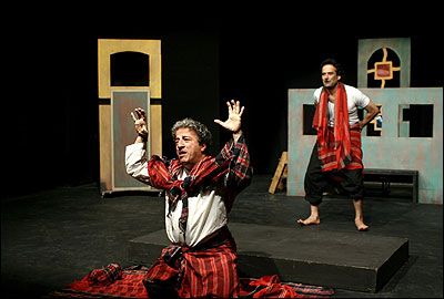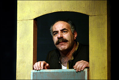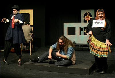 مطرب در برابر پیشنهاد لطیف پاسخ می دهد که این پول در اندازه ای که او را بسازد، نیست. از راست خسرواحمدی ( گدا، زن پوش)- کورش خزاعی ( مطرب)- مرتضی آقا حسینی ( داماد