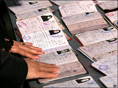 مسئولان شناسنامه رای دهندگان را مطابقت کرده و به آن مهر انتخابات می زنند.