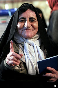 يک زن ايرانی پس از به صندوق انداختن رای.