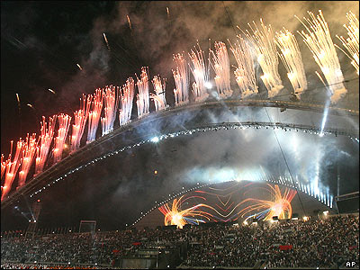 آتش بازی بر فراز استاديوم خليفه در مراسم اختتاميه پانزدهمين دور از بازی های آسيایی در دوحه