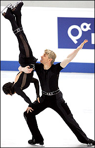 زوج اسکيت باز بلغار در دور نهايی رقابت های بين المللی اسکيت روی يخ در شهر سن پترزبورگ روسيه. |