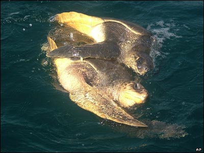 جفتگیری دو لاک پشت در ساحل حفاظت شده روسیکولیا در هند.