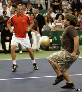 دیگو مارادونا کاپيتان سابق تیم ملی فوتبال آرژانتین در کنار دیوید نعلبندیان تنیس باز معروف این کشور.
