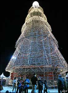 حتی در کشورهای غير مسيحی آسیا نيز جشنهای کريسمسی برگزار می شود. درختی در شهر چانگ کينگ که با استفاده از 100 هزار قوطی کوکا کولا درست شده است.