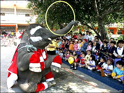 فيل در لباس بابا نوئل در يک مدرسه در تايلند