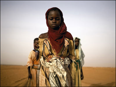 سه دختر جوان در نزديکی اردوگاه آوارگان دارفور به جمع آوری هيزم مشغولند. درگيری ها در منطقه دارفور سودان که از سال 2003 آغاز شد، همچنان ادامه دارد و تاکنون حدود دو ميليون آواره بجا گذاشته است.